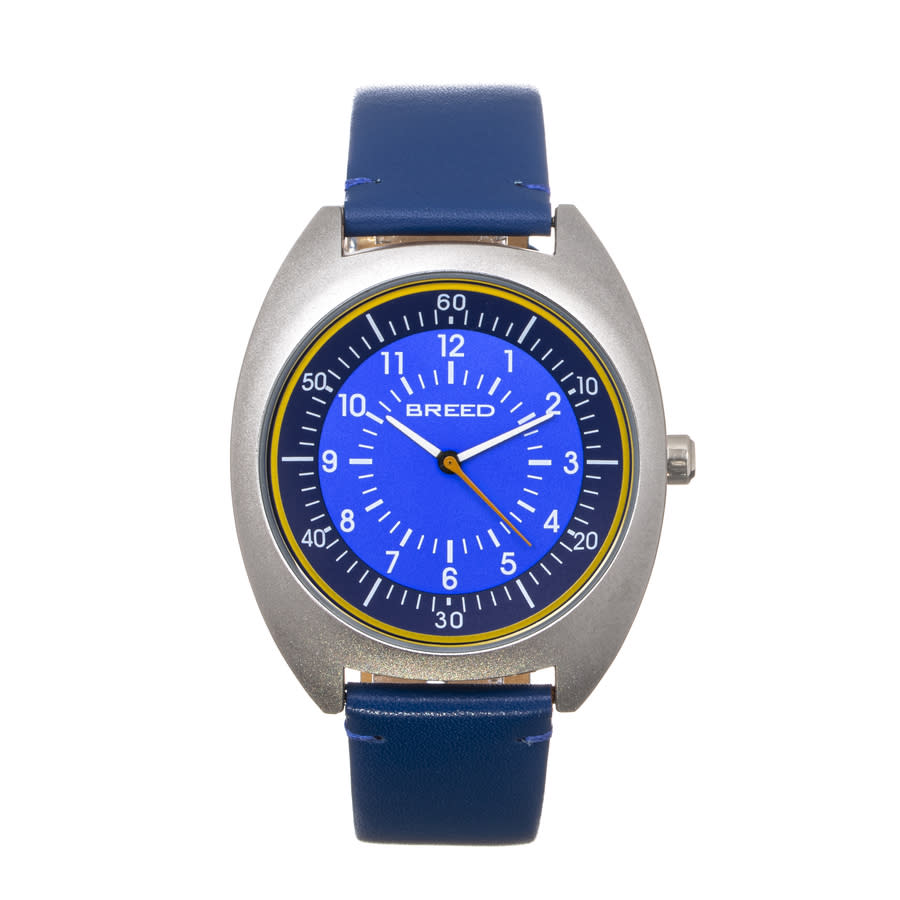 Band Color: Blue Genuine Leather; Band Width: 20mm near case; 18mm near clasp/buckle; Bezel Color: Silver; Case: Silver + Circle-Shaped; Case Finish: Matte + Alloy; Case Thickness: 8mm; Case Width: 43mm; 45mm with Crown; Clasp / Buckle: Strap Buckle; Dial: Blue + Analog; Hand Color: White; Movement: Japanese + Quartz; Time Zones: Single; Water Resistance: 5 ATM.