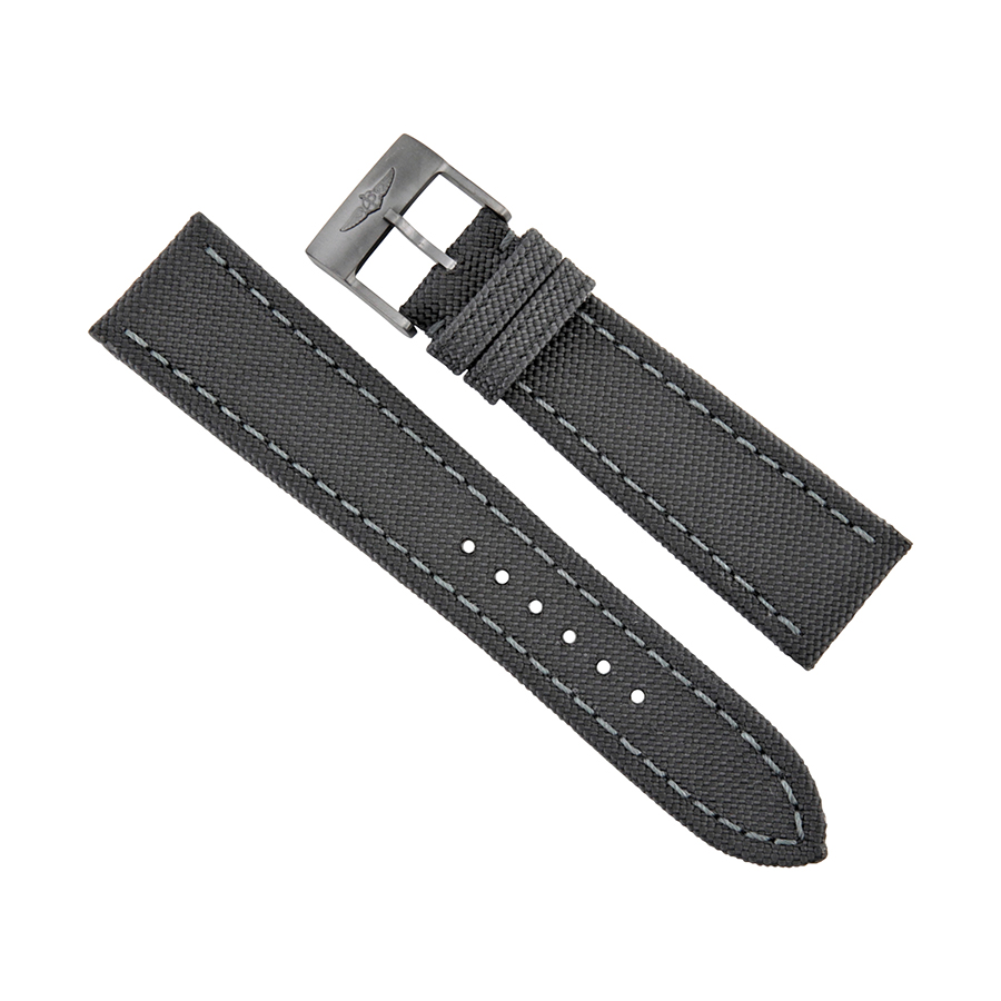 Dark green canvas strap. Band width: 24mm - 20mm. Band length: 7 inches. Tang clasp. Breitling Dark Green Canvas Strap 24mm - 20mm 100W-M20BASA.1.