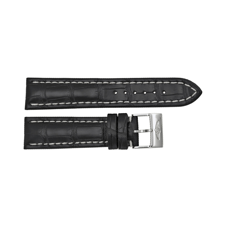 Breitling 22-20mm Black Crocodile Strap with a Stainless Steel Tang Buckle. Lugs 22 mm, Tapers To 20 mm. Fits all Breitling Models with 22mm Inlet