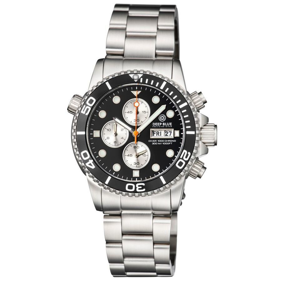 Deep Blue DIVER40CHRONOBLKSILVERSUBSBRAC Diver 1000 Quartz Chronograph Diver Unisex Chronograph Quartz Watch