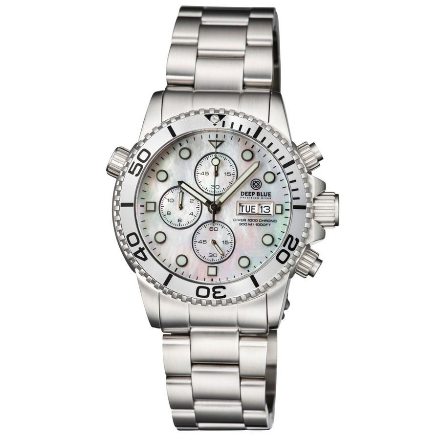 Deep Blue DIVER40CHRONOWHITEMOPBRACE Diver 1000 Quartz Chronograph Diver Unisex Chronograph Quartz Watch