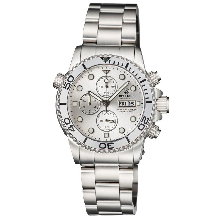 HomeDeep Blue WatchesDeep Blue Diver Series WatchesDeep Blue DIVER40CHRONOSILSILBRACE Diver 1000 Quartz Chronograph Diver Unisex Chronograph Quartz Watch
