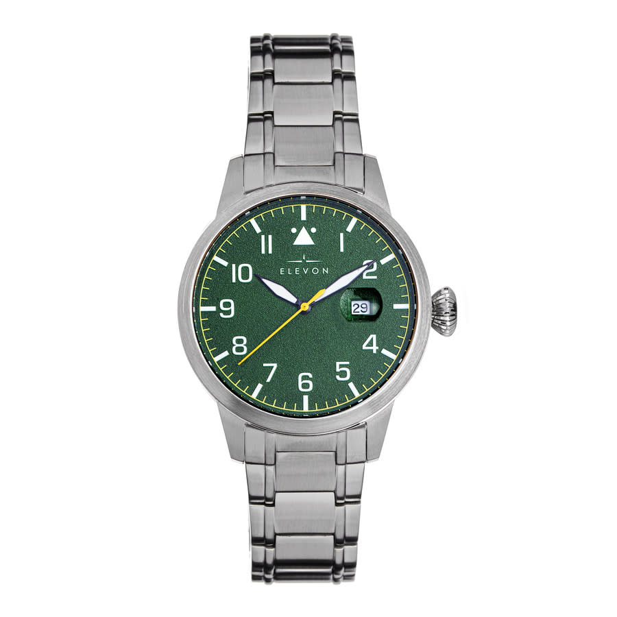 Band Color: Silver Alloy; Band Width: 20mm near case; 18mm near clasp/buckle; Bezel Color: Silver; Case: Silver + Circle-Shaped; Case Finish: Polished + Alloy; Case Thickness: 10mm; Case Width: 42mm; 46mm with Crown; Clasp / Buckle: Butterfly; Dial: Green + Analog; Hand Color: Black & Yellow; Movement: Japanese + Quartz; Time Zones: Single; Water Resistance: 5 ATM.
