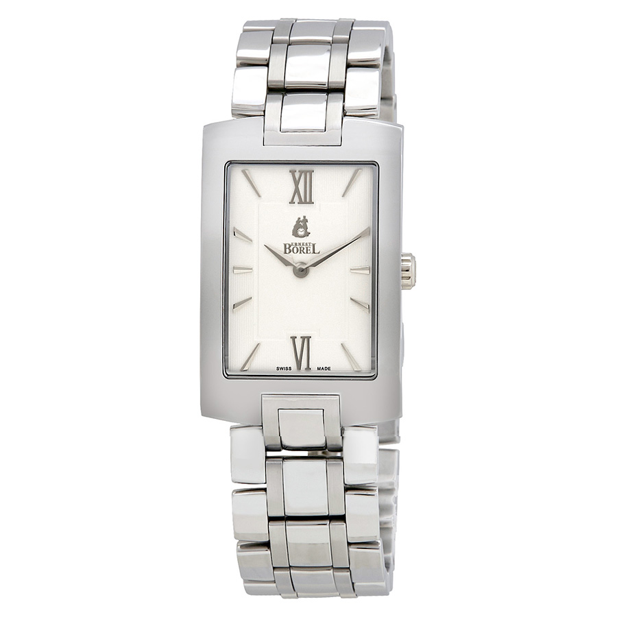 Silver-tone stainless steel case with a silver-tone stainless steel bracelet. Fixed silver-tone stainless steel bezel. Silver dial with silver-tone hands and index and Roman numeral hour markers. Dial Type: Analog. Quartz movement. Scratch resistant sapphire crystal. Pull / push crown. Round case shape. Deployment clasp. Water resistant at 30 meters / 100 feet. Functions: hour, minute, second. Dress watch style. Ernest Borel True Love Silver Dial Stainless Steel Mens Watch GS520-4522.