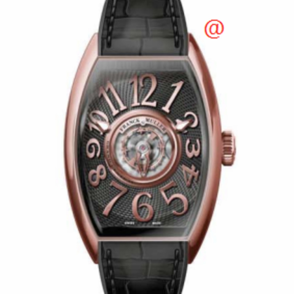 Rose gold-tone 18kt rose gold case with a black alligator band. Fixed rose gold-tone 18kt rose gold bezel. Black dial with rose gold-tone hands and Arabic numeral hour markers. Dial Type: Analog. Luminescent hands and markers. Automatic movement. Scratch resistant sapphire crystal. Tonneau case shape, case size: 40 mm. Functions: hour, minute, second. Additional Info: original box, international warranty card, manual (complete accessories). Cintree Curvex Series. Luxury watch style. Watch label: Swiss Made. Franck Muller Cintree Curvex Automatic Black Dial Mens Watch CX40TCTR5NACNRBR(5NNR).