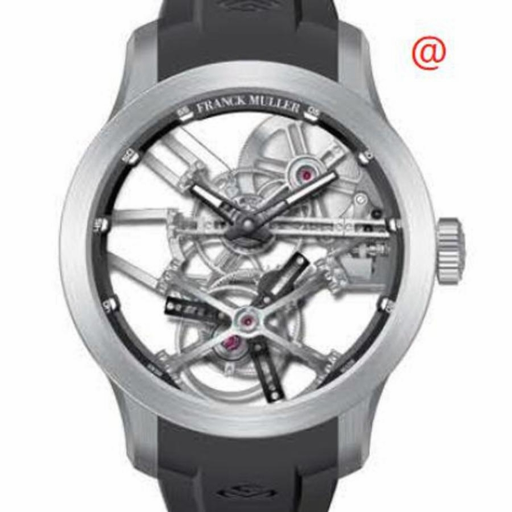 18kt white gold case with a black rubber strap. Fixed 18kt white gold bezel. Transparent dial with black hands and index hour markers. Dial Type: Analog. Luminescent hands and markers. Automatic movement. Scratch resistant sapphire crystal. Screw down crown. Transparent see through case back. Round case shape, case size: 47 mm. Functions: hour, minute, second. Additional Info: original box, international warranty card, manual (complete accessories). Gravity Endurance Series. Luxury watch style. Watch label: Swiss Made. Franck Muller Gravity Endurance Automatic Mens Watch END475TGRAVITYCSSQT(OGBR).
