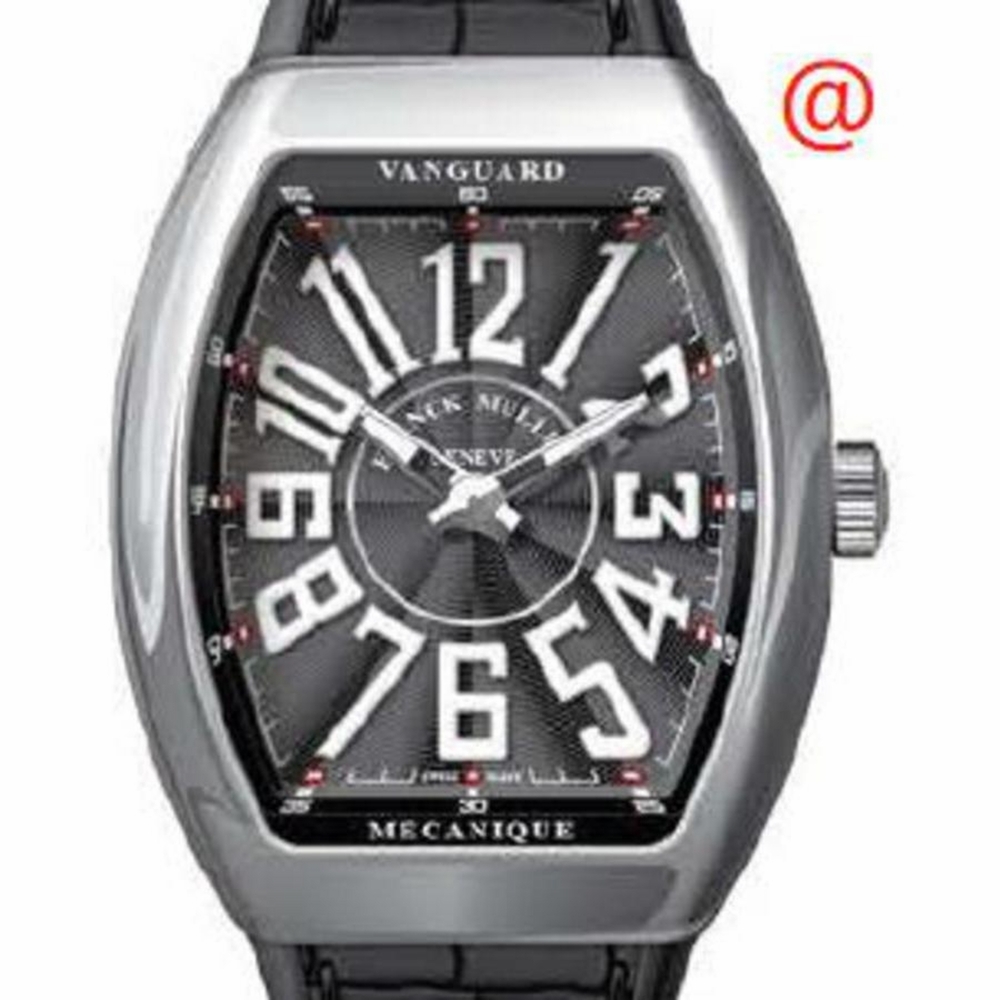 Silver-tone stainless steel case with a black alligator band. Fixed silver-tone stainless steel bezel. Silver-tone dial with silver-tone hands and Arabic numeral hour markers. Minute markers around the outer rim. Dial Type: Analog. Luminescent hands and markers. Automatic movement. Scratch resistant sapphire crystal. Tonneau case shape, case size: 41 mm. Functions: hour, minute. Additional Info: original box, international warranty card, manual (complete accessories). Vanguard Series. Luxury watch style. Watch label: Swiss Made. Franck Muller Vanguard Automatic Silver Dial Mens Watch V41SACNR(NRBLCAC).