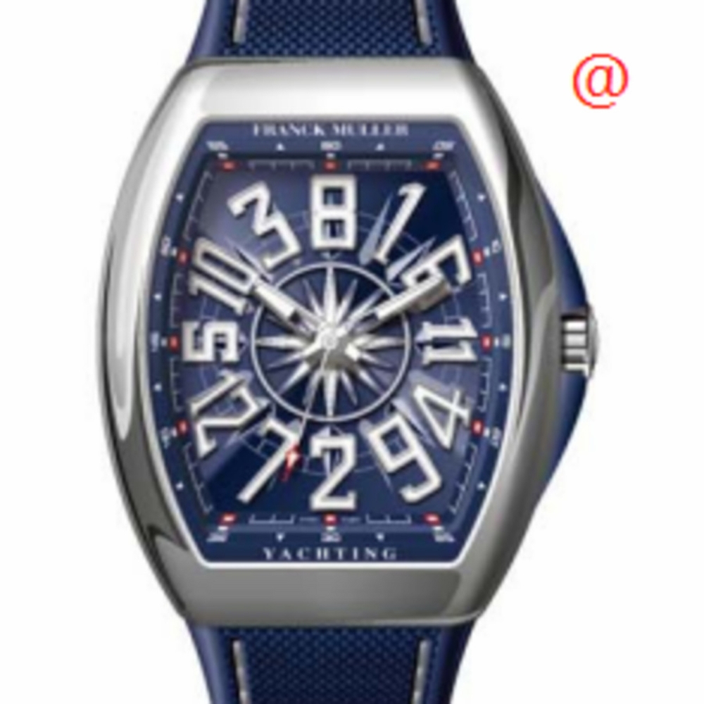 Silver-tone stainless steel case with a blue alligator band. Fixed silver-tone stainless steel bezel. Blue dial with silver-tone hands and Arabic numeral hour markers. Minute markers around the outer rim. Dial Type: Analog. Luminescent hands and markers. Automatic movement. Scratch resistant sapphire crystal. Tonneau case shape, case size: 41 mm. Functions: hour, minute, second. Additional Info: original box, international warranty card, manual (complete accessories). Vanguard Yachting Series. Luxury watch style. Watch label: Swiss Made. Franck Muller Vanguard Yachting Automatic Blue Dial Mens Watch V41CHYACHTINGACBL(BLBLCAC).