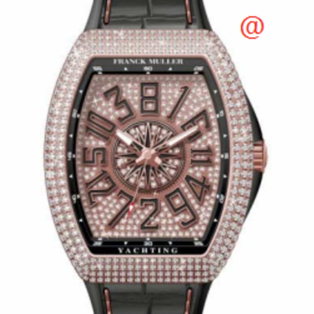 Rose gold-tone 18kt rose gold case with a black alligator band. Fixed rose gold-tone bezel with diamond set 18kt rose gold. Rose gold-tone dial with rose gold-tone hands and Arabic numeral hour markers. Minute markers around the outer rim. Dial Type: Analog. Luminescent hands and markers. Automatic movement. Scratch resistant sapphire crystal. Tonneau case shape, case size: 44 mm. Functions: hour, minute, second. Additional Info: original box, international warranty card, manual (complete accessories). Vanguard Yachting Series. Luxury watch style. Watch label: Swiss Made. Franck Muller Vanguard Yachting Automatic Diamond Rose Gold Dial Mens Watch V45CHDCDYACHTING5NNR(DIAMNR5N).