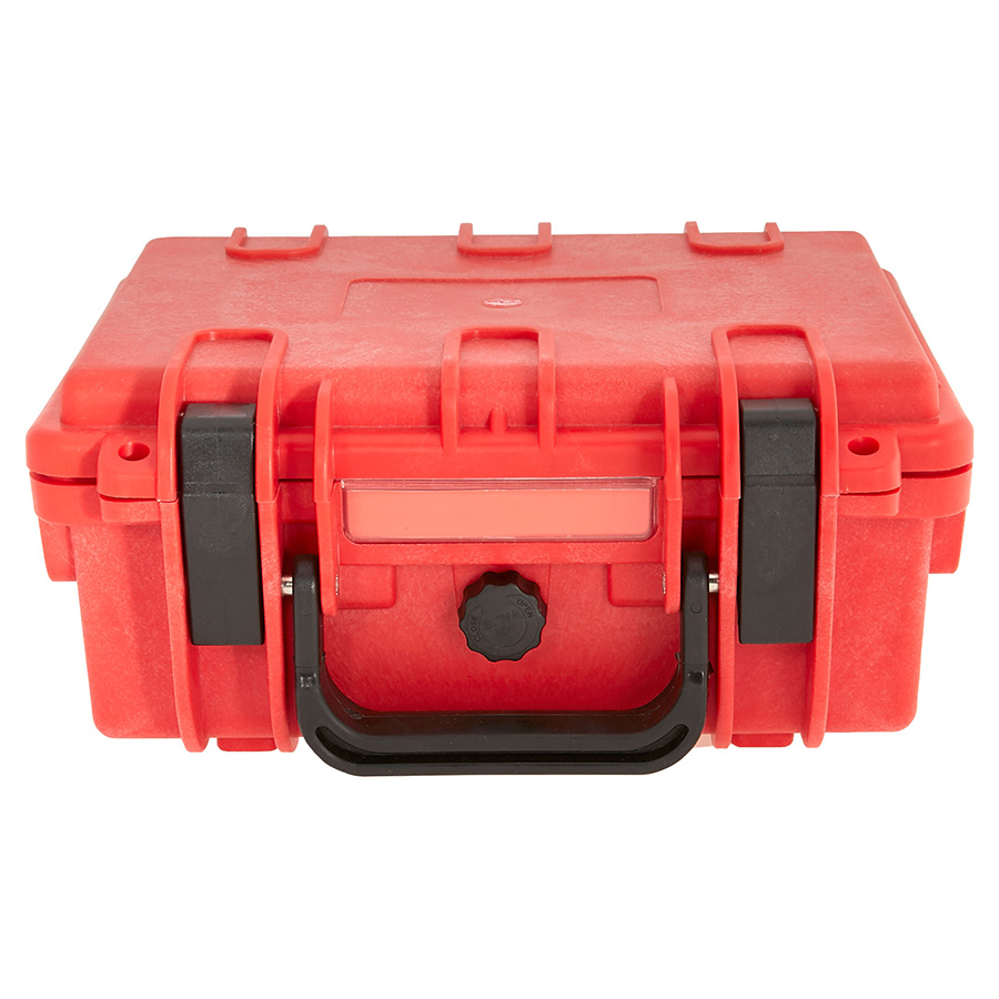 A Red Diver watch box featuring slots for three watches, two snap locking closures and a black handle. Dimensions: 25x22x12 cm