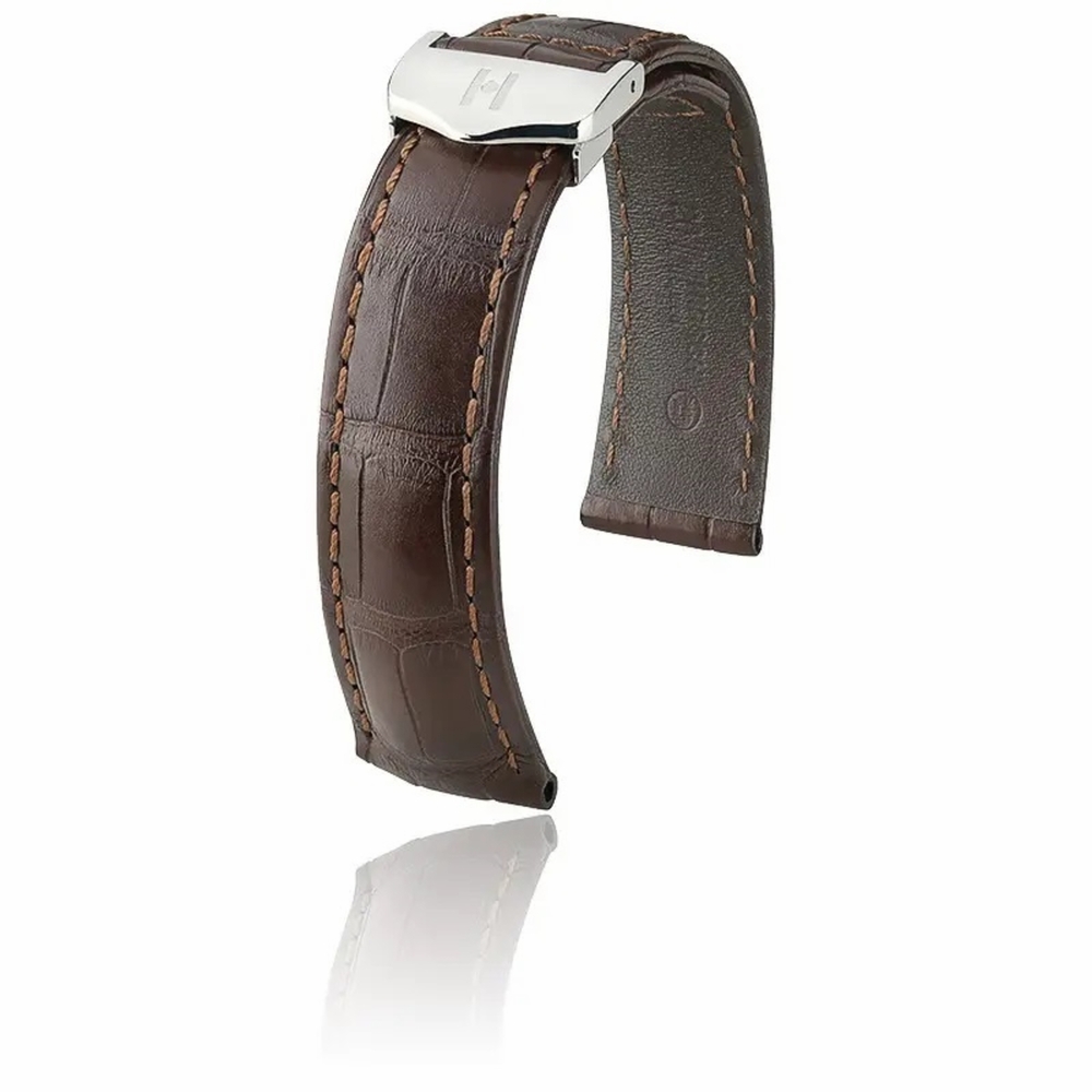 Brown alligator leather strap. Band width: 19 mm. Folding clasp. Speed Series. Hirsch Speed Unisex 19 mm Alligator Leather Watch Band 07407417-2-1916.