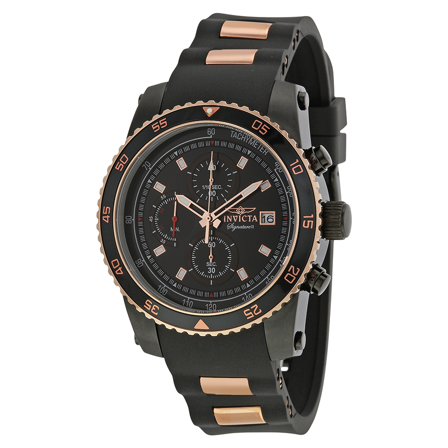 The beautiful Invicta 7455 watch features a stainless steel 45mm case, with a uni-directional rotating bezel, and a black dial covered by a flame fusion crystal. The stylish wristwatch is equipped with an exclusive 22mm rubber with rose gold-plated stainless steel inser which combines comfort and sturdiness. This horological trendy device has chronograph, tachymeter, date, hour, minute, second functions.