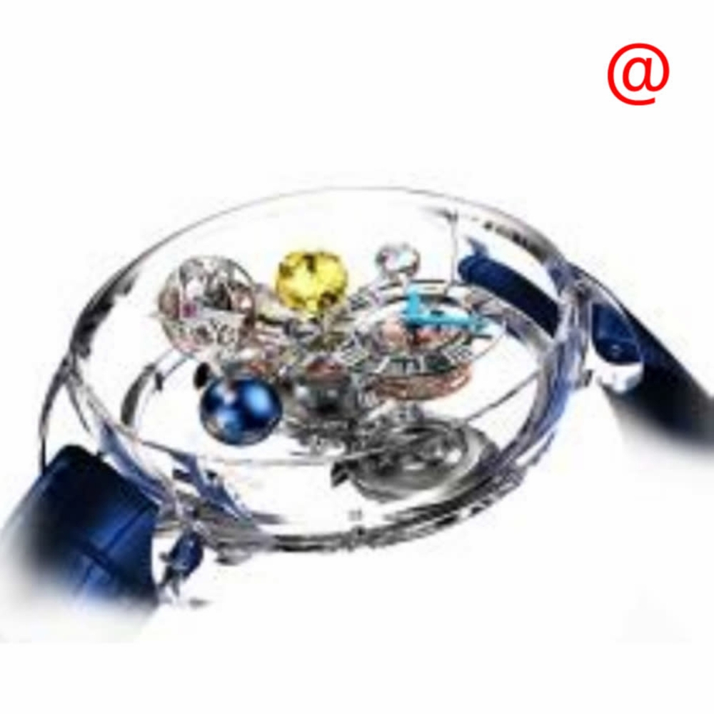 18kt white gold case with a blue alligator band. Fixed bezel. Transparent dial with blue hands and Roman numeral hour markers. Dial Type: Analog. Automatic movement. Scratch resistant sapphire crystal. Transparent see through case back. Round case shape, case size: 50 mm. Buckle clasp. Water resistant at 30 meters / 100 feet. Functions: hour, minute, second. Additional Info: original box, international warranty card, manual (complete accessories). Astronomia Series. Luxury watch style. Watch label: Swiss Made. Jacob Co. Astronomia Automatic Mens Watch AT125.80.AA.UD.BBALA.