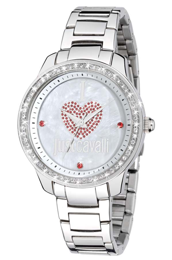 Silver-tone stainless steel case with a silver-tone stainless steel bracelet. Fixed silver-tone stainless steel bezel. Silver dial with silver-tone hands and index hour markers. Minute markers around the outer rim. Dial Type: Analog. Quartz movement. Scratch resistant mineral crystal. Push/pull crown. Solid case back. Round case shape, case size: 40 mm, case thickness: 10 mm. Band width: 17.5 mm, band length: 7.5 in. Deployant buckle clasp. Water resistant at 30 meter / 99 feet. Functions: hour, minute, second. Casual watch style. Just Cavalli Shiny Silver Dial Ladies Watch R7253196503.