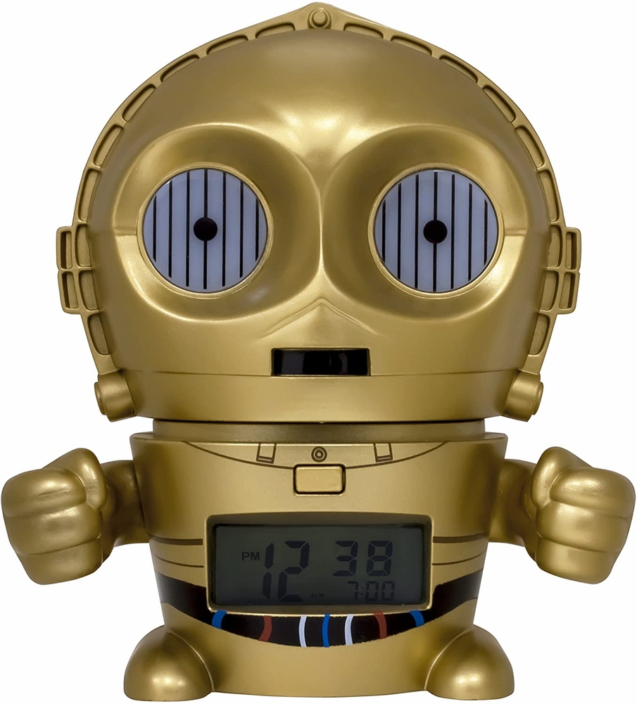 Fixed bezel. Dial Type: digital. Unique case shape, case size: 5.5 inches tall. Functions: hour, minute, alarm, snooze. Additional Info: requires 2x aaa batteries. Sport watch style. Lego Star Wars C3PO Kids Digital Alarm Clock 2021418.
