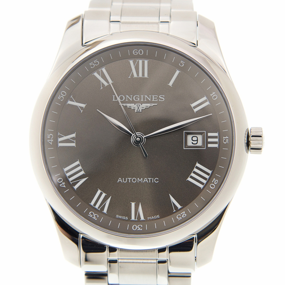 Silver-tone stainless steel case with a silver-tone stainless steel bracelet. Fixed silver-tone stainless steel bezel. Brown dial with silver-tone hands and Roman numeral hour markers. Minute markers around the outer rim. Dial Type: Analog. Date display at the 3 o'clock position. Longines Calibre L888 automatic movement with a 64-hour power reserve. Scratch resistant sapphire crystal. Pull / push crown. Transparent case back. Round case shape. Case size: 40 mm. Deployment with push button release clasp. Water resistant at 30 meters / 100 feet. Functions: date, hour, minute, second. Additional Info: original box, international warranty card, manual (complete accessories). Luxury watch style. Watch label: Swiss Made. Item Variations: L27934716. Longines Master Automatic Brown Dial Unisex Watch L2.793.4.71.6.