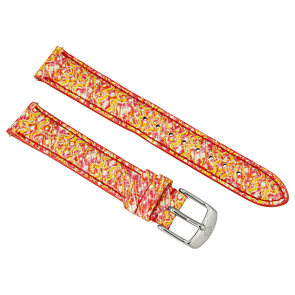 Michele 16mm Yellow and Pink Patent Leather Strap with a Tang Buckle. Interchangeable with any 16 mm Michele Watch.