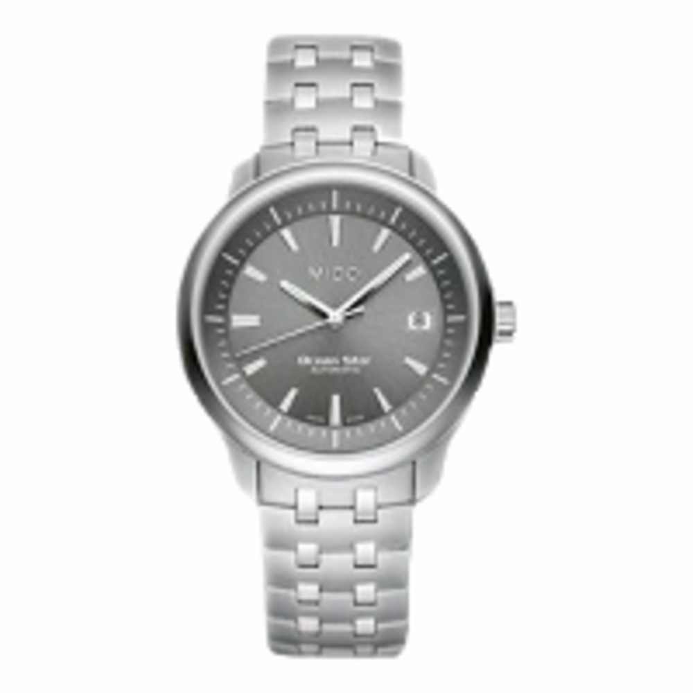 Stainless steel case with a stainless steel bracelet. Fixed stainless steel bezel. Grey dial with silver-tone hands and index hour markers. Minute markers around the outer rim. Dial Type: Analog. Date display at the 3 o'clock position. ETA caliber 2824-2 automatic movement, based upon ETA 2824, containing 25 Jewels, bitting at 28800 vph, and has a power reserve of approximately 38 hours. Scratch resistant sapphire crystal. Pull / push crown. Round case shape. Case size: 39 mm. Fold over clasp with a push button release. Water resistant at 50 meters / 165 feet. Functions: date, hour, minute, second. Ocean Star Captain IIi Series. Casual watch style. Watch label: Swiss Made. Mido Ocean Star Captain III Automatic Grey Dial Watch M8730.4.13.1.