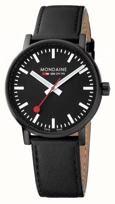 Black IP stainless steel case with a black stainless steel bracelet. Fixed bezel. Black dial with silver-tone hands and index hour markers. Dial Type: Analog. Ronda Caliber 513 quartz movement. Scratch resistant sapphire crystal. Pull / push crown. Solid case back. Round case shape, case size: 40 mm, case thickness: 10 mm. Buckle clasp. Water resistant at 30 meters / 100 feet. Functions: hour, minute, second. Evo2 Series. Watch label: Swiss Made. Mondaine Evo2 Quartz Black Dial Mens Watch MSE.40121.LB.