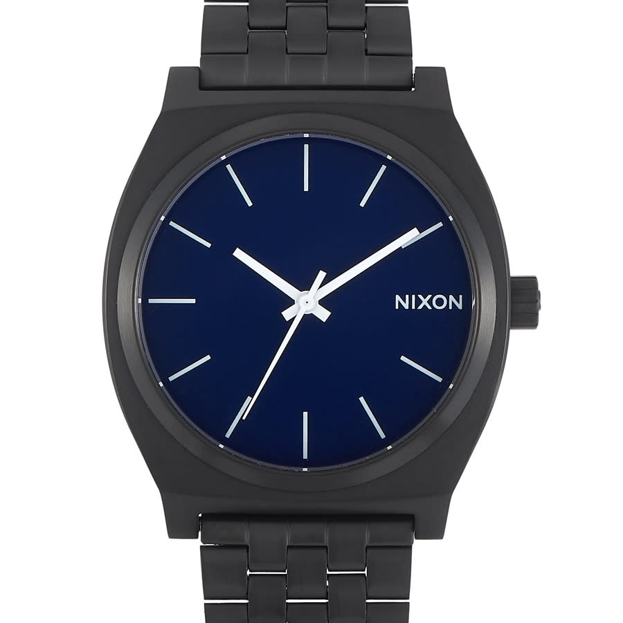Black stainless steel case and bracelet. Fixed black stainless steel bezel. Black dial with silver-tone hands and index hour markers. Dial Type: Analog. Quartz movement. Solid case back. Round case shape, case size: 37 mm. Fold over clasp. Water resistant at 100 meters / 330 feet. Functions: hour, minute, second. Time Teller Series. Casual watch style. Nixon Time Teller Quartz Black Dial Ladies Watch A045-2668-00.