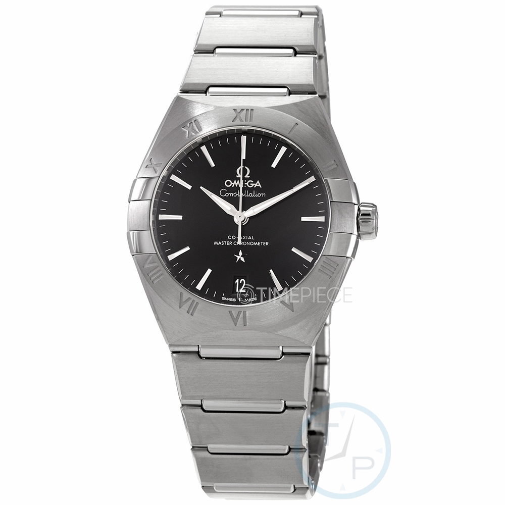 Stainless steel case with a stainless steel bracelet. Fixed stainless steel bezel. Black dial with luminous 18kt white gold hands and index hour markers. Minute markers around the outer rim. Dial Type: Analog. Date display at the 6 o'clock position. Omega calibre 8800 automatic movement, containing 35 Jewels, bitting at 25200 vph, and has a power reserve of approximately 55 hours. Scratch resistant sapphire crystal. Pull / push crown. Transparent case back. Round case shape. Case size: 36 mm. Band width: 22.2 mm. Fold over clasp with a push button release. Water resistant at 50 metres / 167 feet. Functions: date, hour, minute, second. Constellation Automatic Series. Luxury watch style. Watch label: Swiss Made. Omega Constellation Automatic Black Dial Ladies Watch 131.10.36.20.01.001.