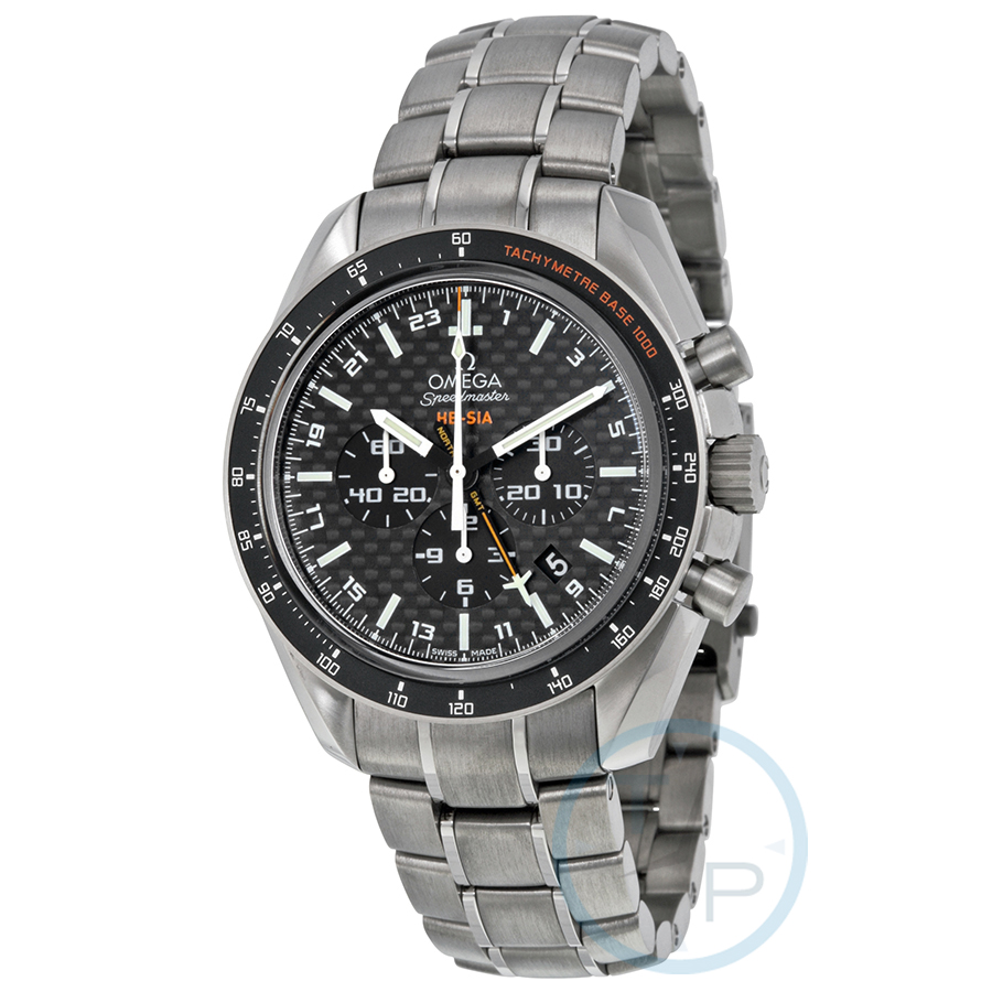 The beautiful Omega 321.90.44.52.01.001 watch features a titanium 44.25mm case, with a fixed bezel, and a black carbon fiber dial covered by a sapphire crystal. The stylish wristwatch is equipped with an exclusive 20mm titanium which combines comfort and sturdiness. This horological trendy device has chronograph, GMT, second time zone, date, hour, minute, second, chronometer, tachymeter functions.