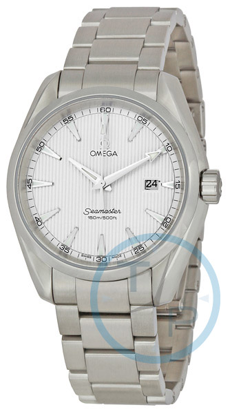 Silver-tone stainless steel case with a silver-tone stainless steel bracelet. Fixed stainless steel silver-tone stainless steel bezel. Silver dial with luminous hands and luminous sticks hour markers. Minute markers around the outer rim. Dial Type: Analog. Luminescent hands and markers. Date display at the 3 o'clock position. Omega Calibre 1538 quartz movement. Scratch resistant double face anti-reflective sapphire crystal. Screw in crown. Solid case back. Round case shape, case size: 38.5 mm, case thickness: 12 mm. Band width: 18.5 mm. Butterfly clasp. Water resistant at 150 meters / 500 feet. Functions: date, hour, minute, second, battery eol indicator, chronometer. Additional Info: easy time zone change/ battery end of life indicator/. Sport watch style. Watch label: Swiss Made. Item Variations: 231 10 39 61 02 001, 231-10-39-61-02-001, 231/10/39/61/02/001, 23110396102001. Omega Seamaster Aqua Terra Watch 231.10.39.61.02.001.
