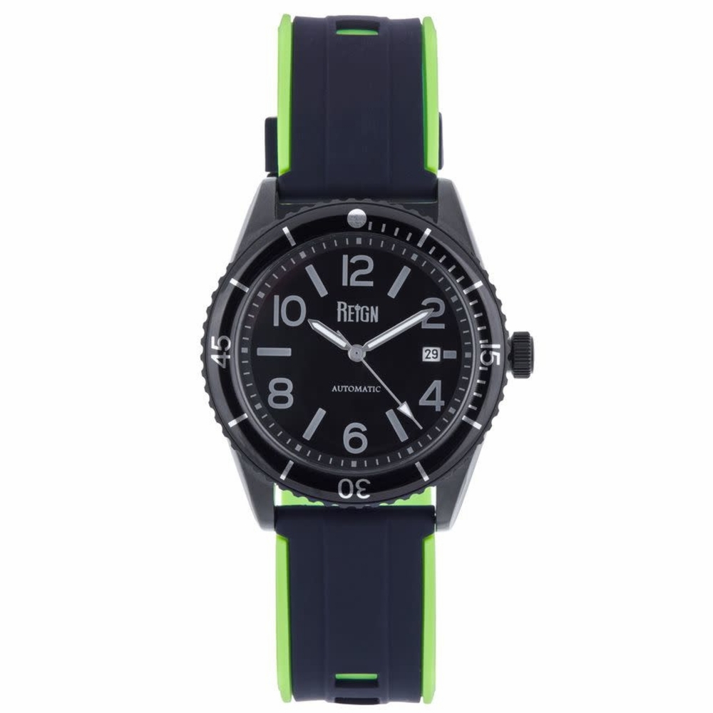 Band Color: Black Rubber; Band Width: 22mm near case; 22mm near clasp/buckle; Bezel Color: Black; Case: Black + Circle-Shaped; Case Finish: Brushed + Stainless Steel; Case Thickness: 14mm; Case Width: 42mm; 45mm with Crown; Clasp / Buckle: Strap Buckle; Dial: Black + Analog; Hand Color: Silver; Movement: Japanese + Automatic; Time Zones: Single; Water Resistance: 10 ATM.