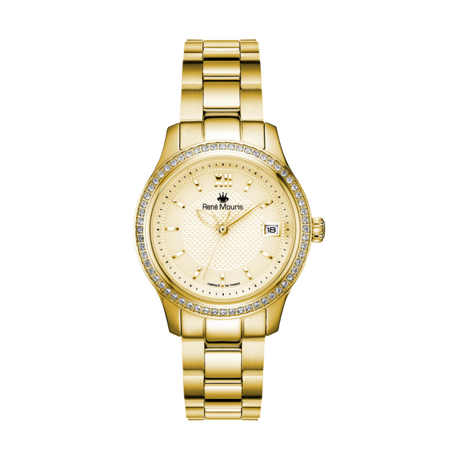 Lola is about a perpetual love once you in love with its elegant look and appealing personality. This collection exhibits Silver, Gold and Brown dials with the fascinated crystals adorned on the bezel which gives an astonishing surprise and is ready to bight on glamorous moment. Accompanies with premium metal bracelets to elevate the exquisiteness.STAINLESS STEEL CASE & BAND - Watch case is constructed by 316L stainless steel and crafted into a 34mm diameter with 9.9mm thickness case. Matching with 14mm width and 190mm length 316L stainless steel band which makes it perfect fit for both casual and formal settings.SCRATCH & WATER RESISTANT - Protected by a sapphire coated mineral crystal glass that is scratch & scrape resistant and it has 5ATM certified water resistant that allows you to wear it all day long.GENUINE CRYSTAL ON BEZEL - Adorned with 60 pieces of crystals on the bezel.Made In France