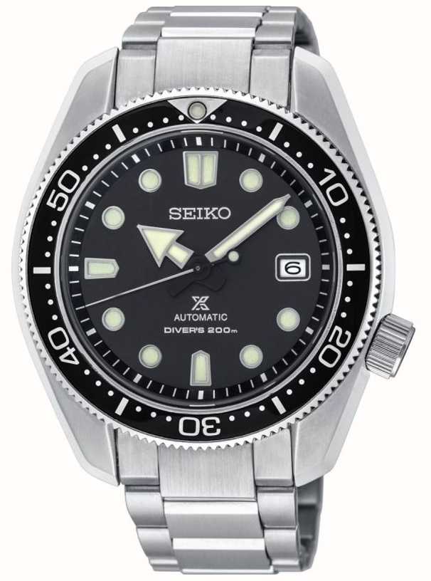 Stainless steel case with a stainless steel bracelet. Uni-directional rotating stainless steel bezel with an inlaid black ring. Black dial with luminous silver hands and dot hour markers. Minute markers around the outer rim. Dial Type: Analog. Luminescent hands and markers. Date display at the 3 o'clock position. Caliber 6R15 automatic movement. Scratch resistant sapphire crystal. Screw down crown. Solid case back. Round case shape. Case size: 44 mm. Case thickness: 12.7 mm. Deployment clasp. Water resistant at 200 meters / 660 feet. Functions: date, hour, minute, second. Prospex Series. Casual watch style. Watch label: Japan Movt. Seiko Prospex Automatic Black Dial Stainless Steel Mens Watch SPB077J1.