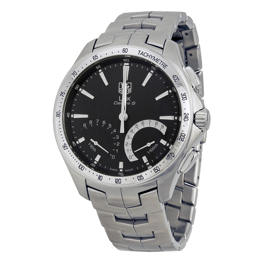 Stainless steel case with a stainless steel bracelet. Fixed stainless steel bezel with tachymeter. Black dial with luminous hands and index hour markers. Minute markers around the outer rim. Dial Type: analog. Two sub-dials displaying: 1/10th seconds and 1/100th seconds counters. Hybrid electro-mechanical movement. Scratch resistant sapphire crystal. Case diameter: 43 mm. Deployment clasp. Water resistant at 200 meters/ 660 feet. Functions: hours, minutes, seconds, chronograph, tachymeter. Sport watch style. Watch label: Swiss Made.