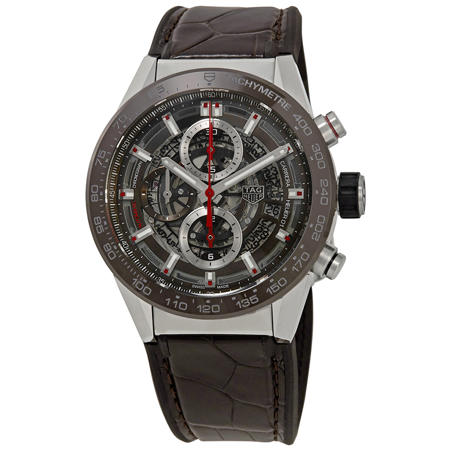 At the heart of this timepiece is Tag Heuer Calibre 01. The Automatic movement operates at 28800 A/h and keeps the hands revolving smoothly and accurately for precise, reliable timekeeping. It contains 39 Jewels, and picks up all the advantages of this high-performance ‘engine’, including a 50-hour power reserve.