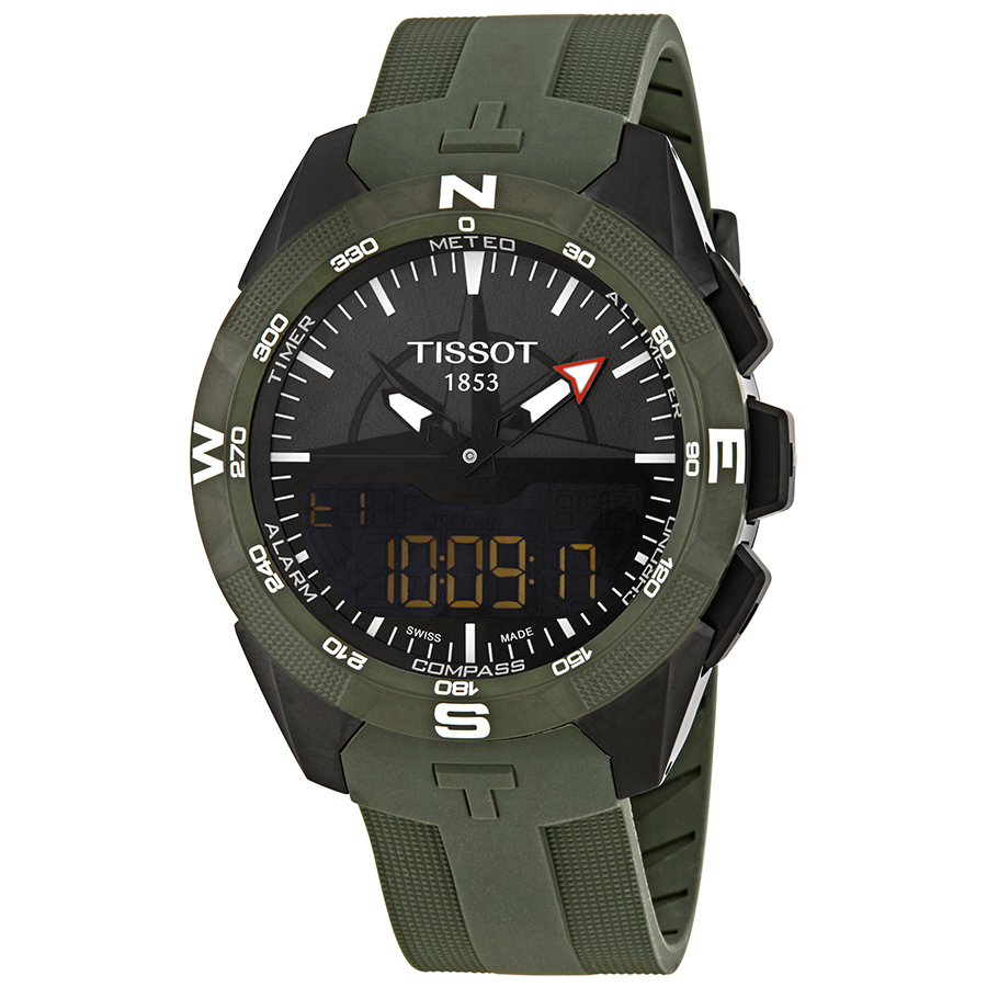 The beautiful Tissot T110.420.47.051.00 watch features a titanium 45mm case, with a bi-directional rotating bezel, and a black dial covered by a scratch resistant tactile sapphire crystal. The stylish wristwatch is equipped with an exclusive 22mm rubber which combines comfort and sturdiness. This horological trendy device has GMT, second time zone, hour, minute, second, compass, barometer, altimeter, perpetual calender, digital display, stopwatch, timer functions.