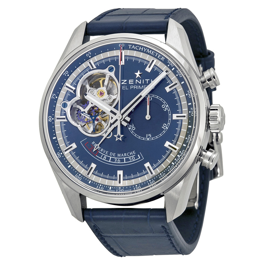 At the heart of this timepiece is Zenith Calibre El Primero 4021. The Automatic movement operates at 36000 A/h and keeps the hands revolving smoothly and accurately for precise, reliable timekeeping. It contains 39 Jewels, composed of 248 parts, and picks up all the advantages of this high-performance ‘engine’, including a 50-hour power reserve.