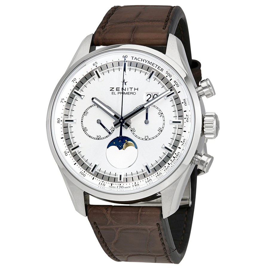 At the heart of this timepiece is Zenith Calibre El Primero 4047. The Automatic movement operates at 36000 A/h and keeps the hands revolving smoothly and accurately for precise, reliable timekeeping. It contains 32 Jewels, composed of 332 parts, and picks up all the advantages of this high-performance ‘engine’, including a 50-hour power reserve.